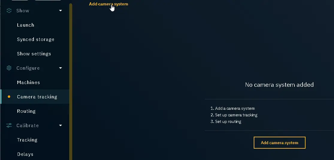 Go to Configure->Camera Tracking. If there is no existing camera, press Add camera system:
