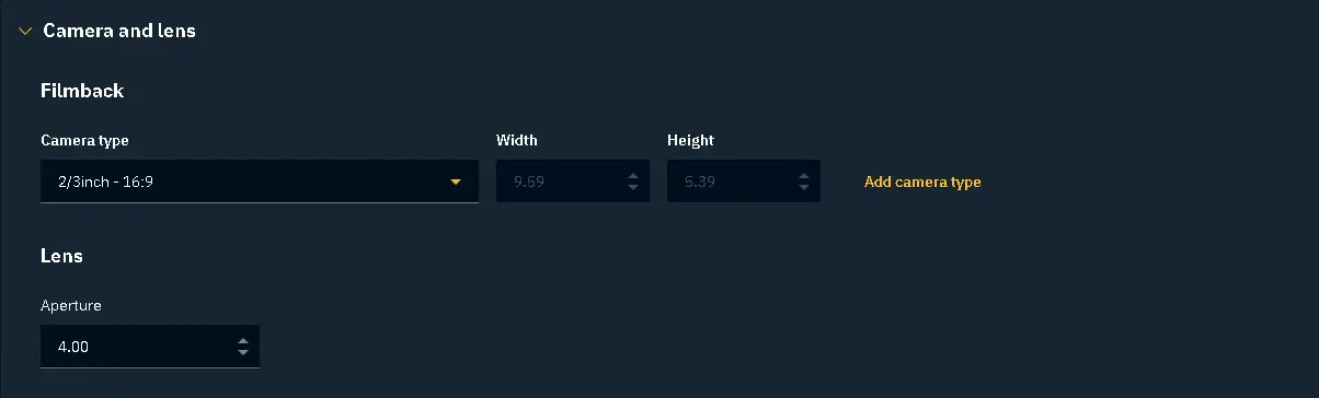 In the Configure->Camera Tracking tab, set the filmback characteristics of your camera. Make sure the sensor width and height correspond to the values you put in CalibFX Lens when exporting the lens file: