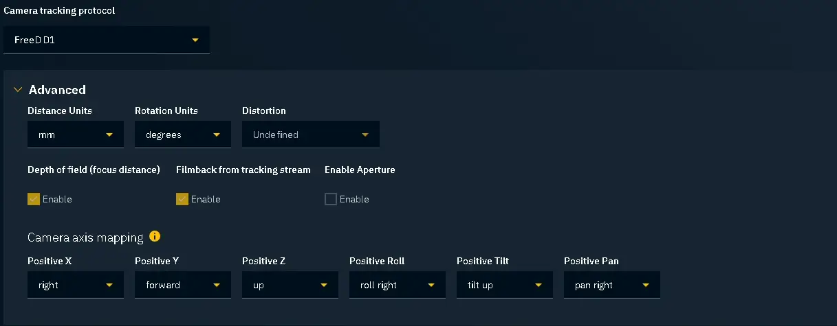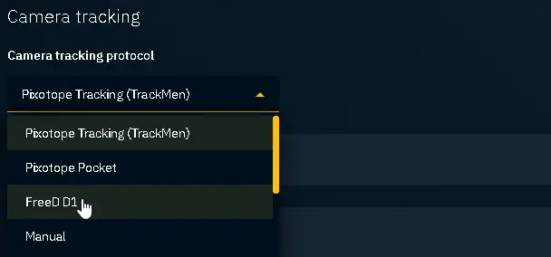 Scroll down and choose the protocol. Usually you would use "FreeD D1":
