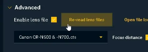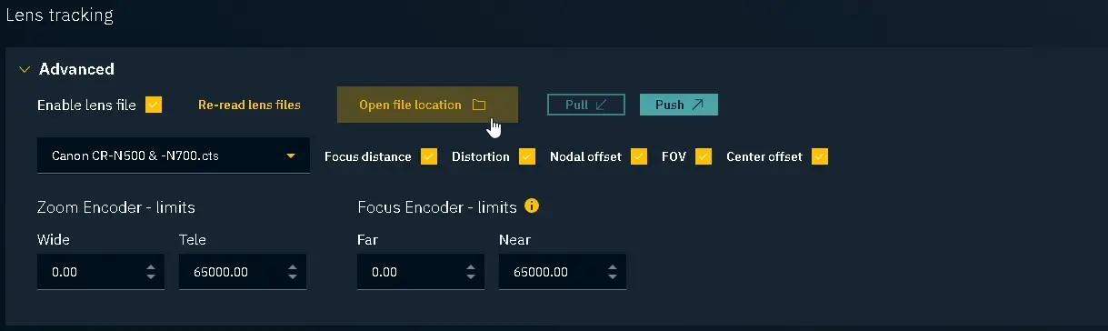 Scroll down to Lens tracking. Check Enable lens file and press Open file location: