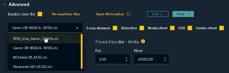 Afterward, come back to Pixotope and press Re-read lens files to update the list: