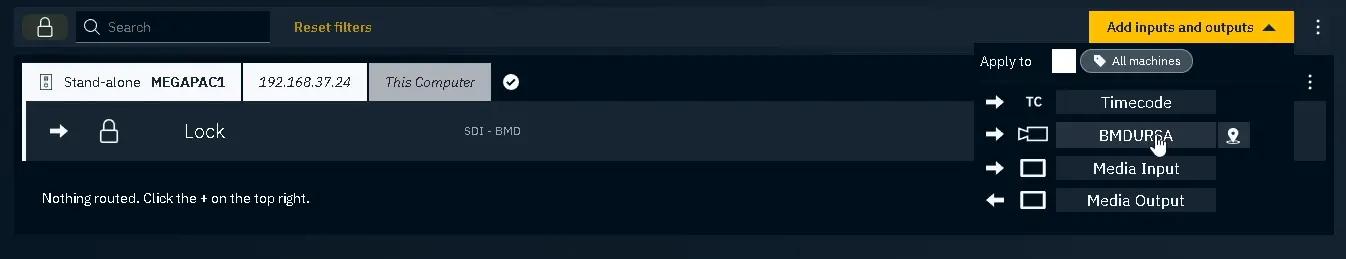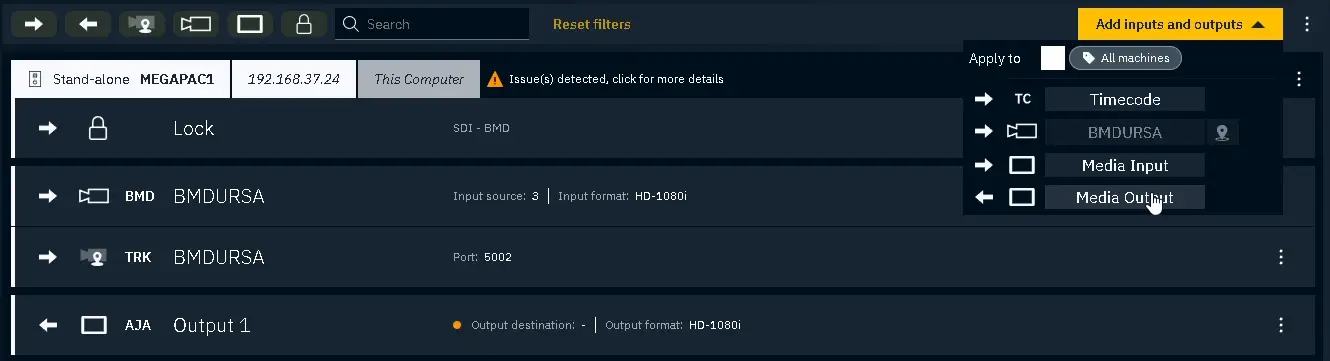 Press Add inputs and outputs and select the camera tracking device from earlier: