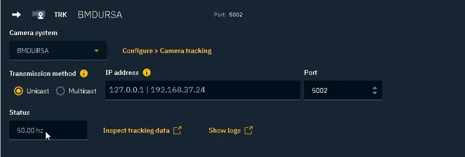 Open the tracking configuration and set the correct IP and Port for the receiver: