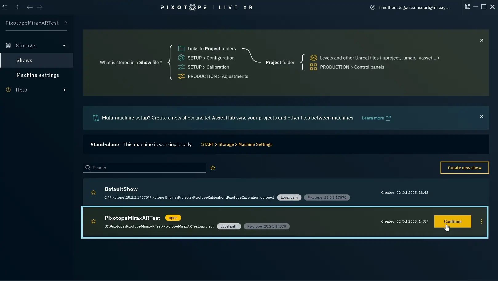 Start a Pixotope Show: