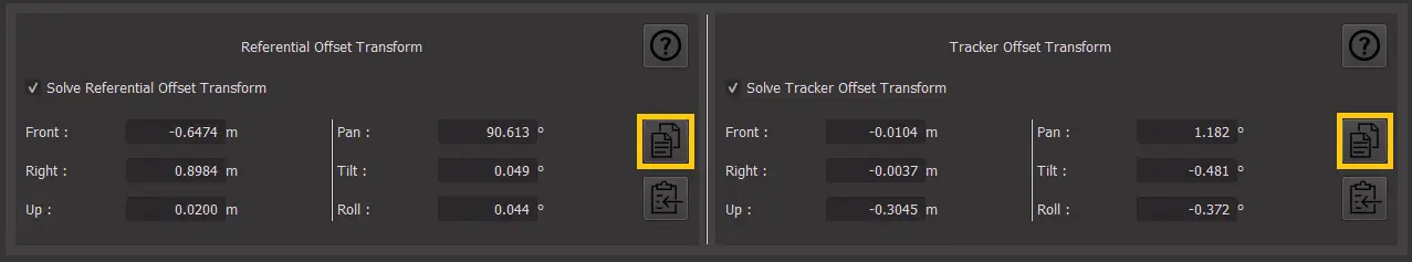 In CalibFX-Lineup, on the right side of each offset transform, there is a button to copy the transform to the clipboard: