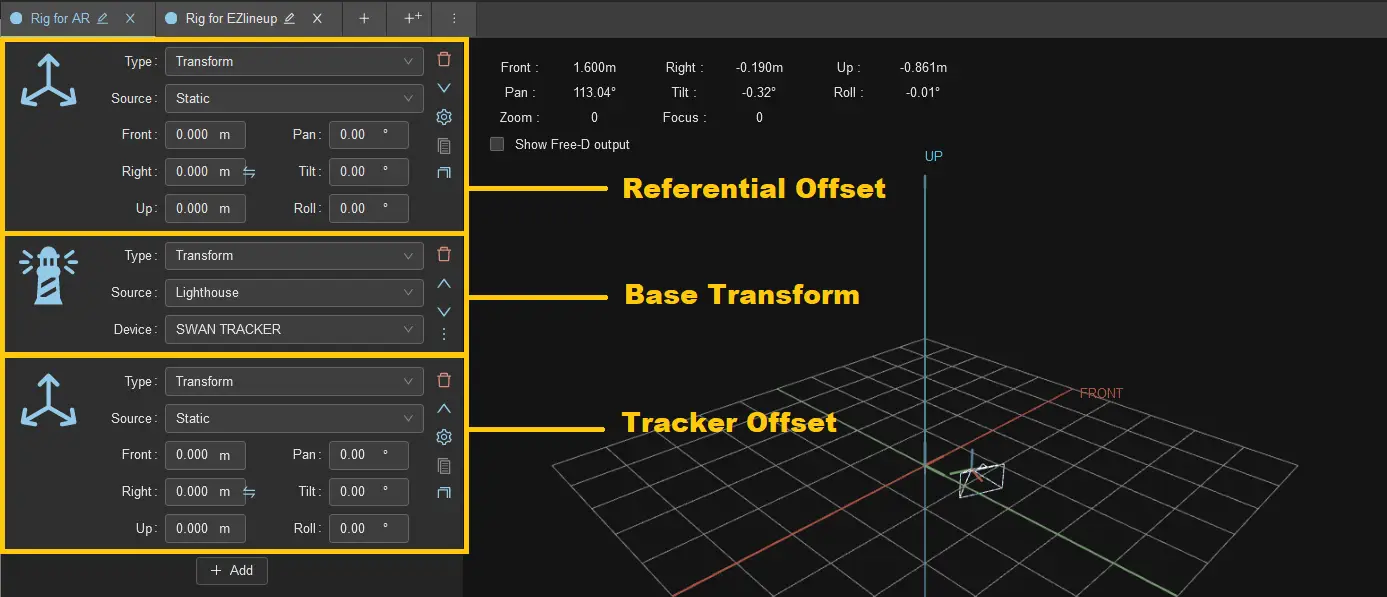 This is why we recommand splitting the rig in two, one for the render engine with the offsets applied, and a clean one without the Referential and Tracker offsets for CalibFX-Lineup if needed.