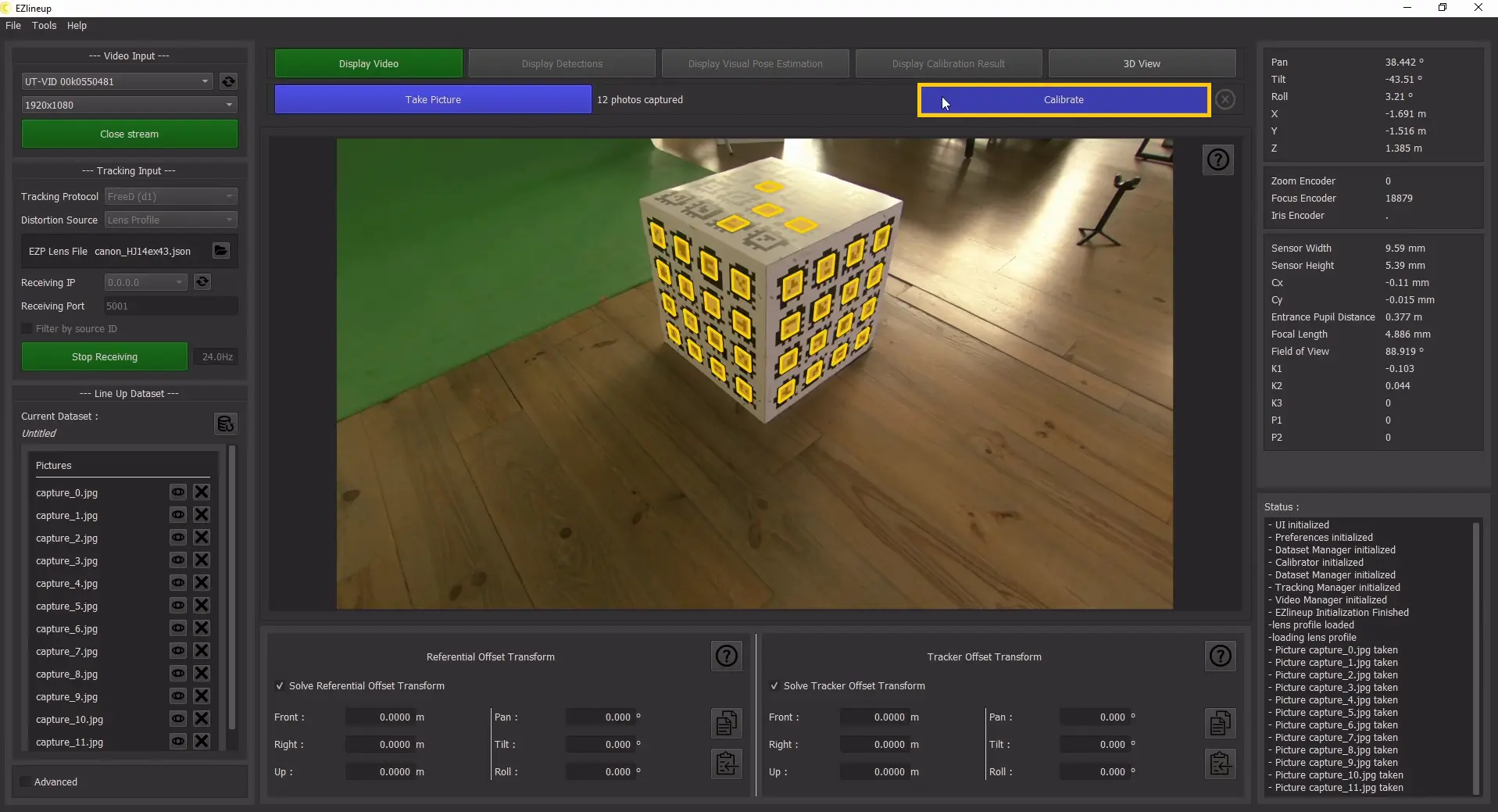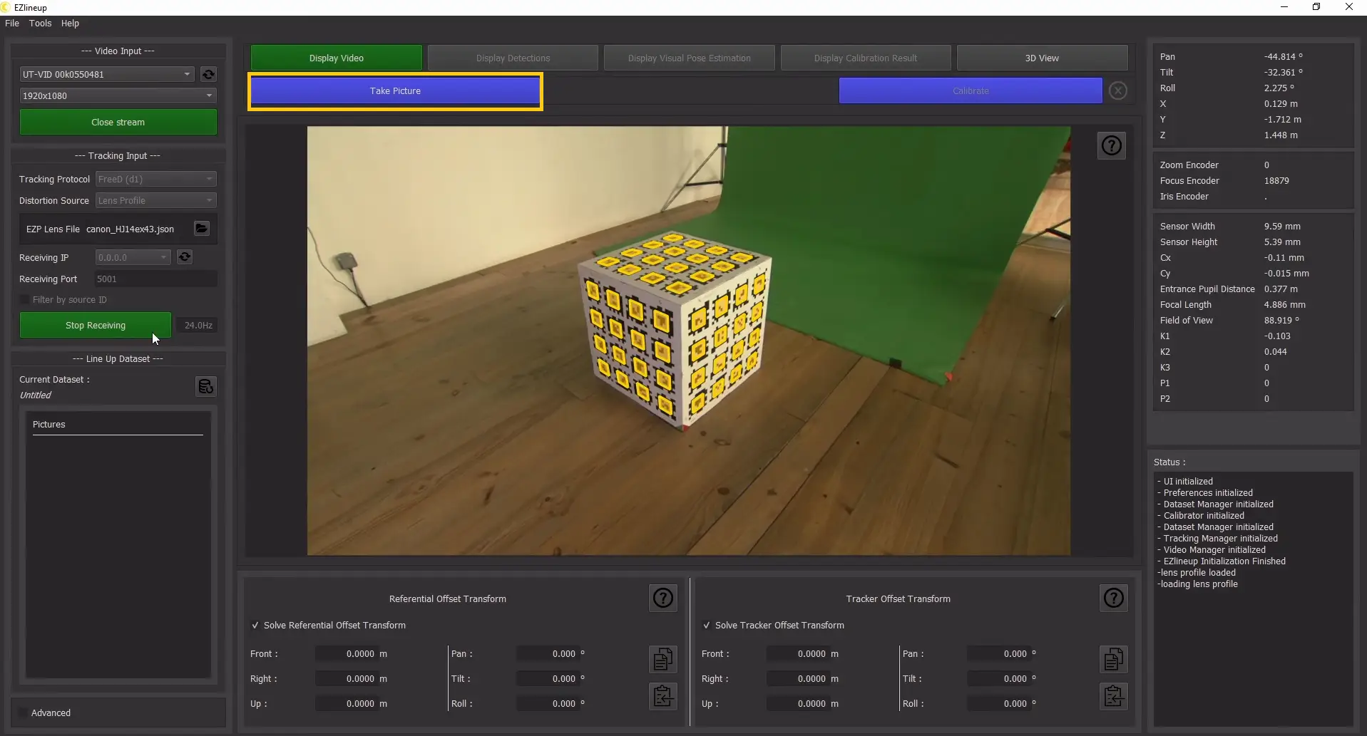 When everything is set to start the calibration, the "Take Picture" button will unlock itself:
