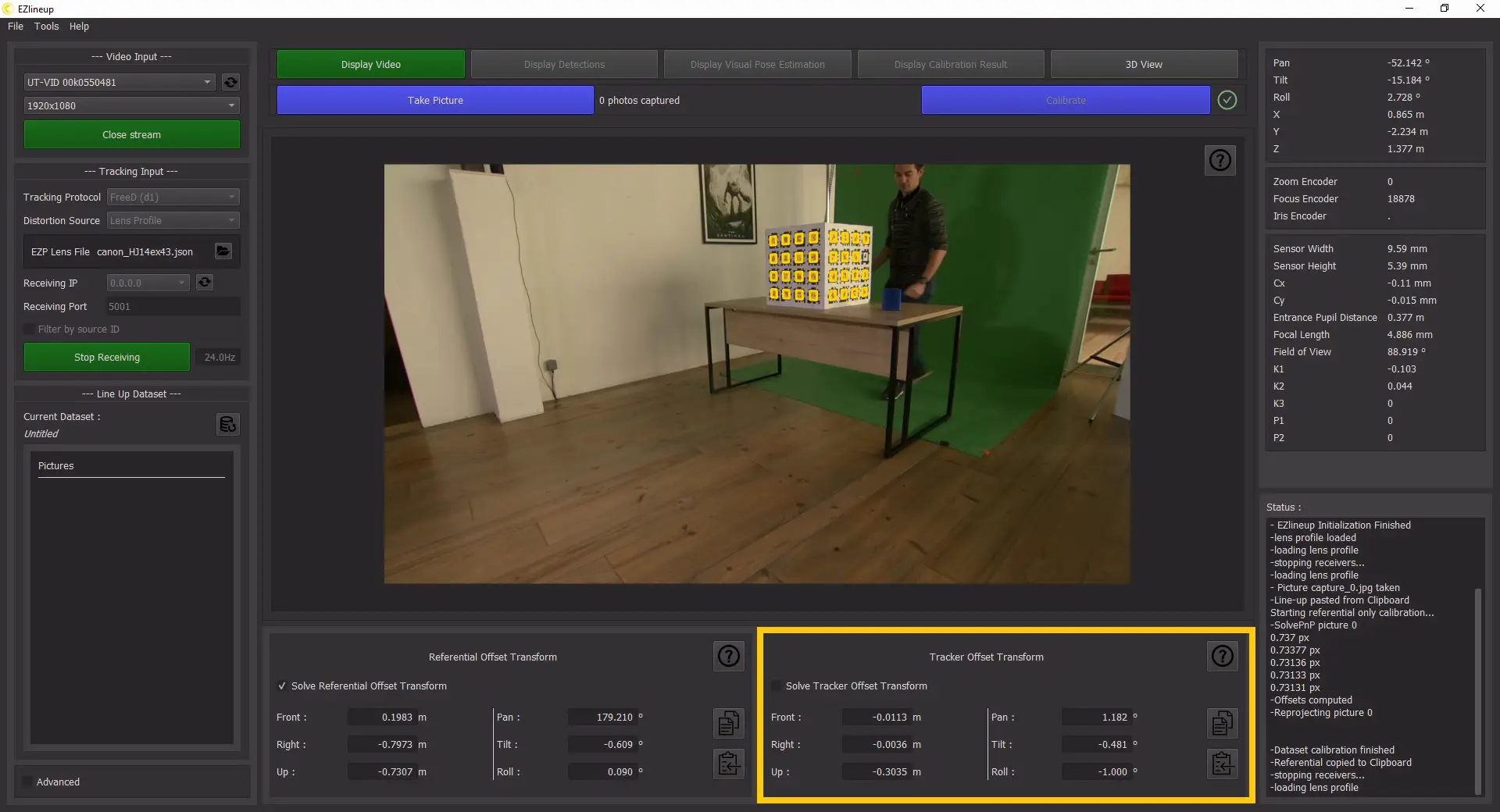 You can load your line-up calibration first, that way the tracker offset values will be filled in automatically beforehand.