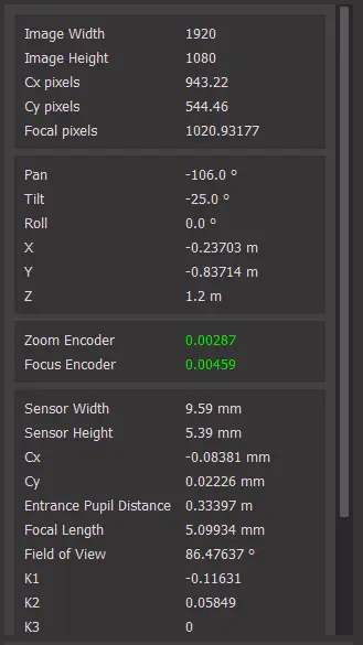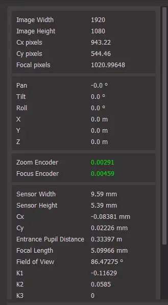 Now the current data on the right shows the pose from this input, along with the lens data of the previous input: