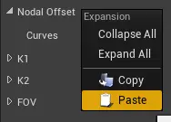 NodalOffset - In the lens profile, right click on Nodal Offset and Paste (right click exactly on the name, otherwise it won't work)