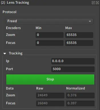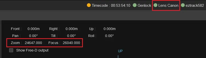 You should now see the same values as in EZtrack, check that they move when you move the controls on the lens.