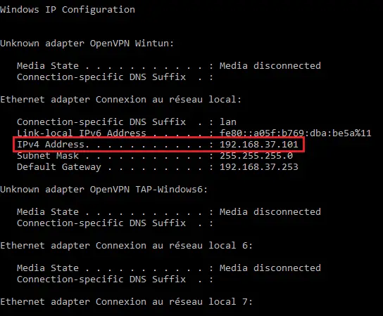 The IP should be the IPv4 one. For me it is "192.168.37.101".