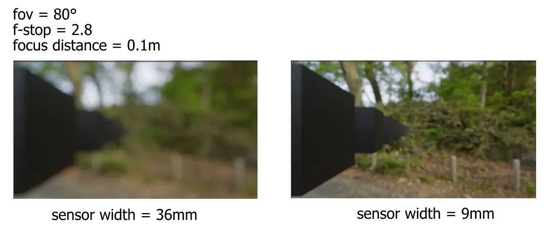 For this reason, you should put the actual sensor size in both EZprofile and the render engine. If you put 36mm for a 9mm broadcast camera, the depth of field will look wrong.