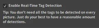 The real time tag detector is less effective than the offline one used in the process step. This is a very useful guide but don't hesitate to take pictures even if few tags are detected, especally at steep angles relative to the optical axis. There is a chance you will get more detections in processing.
