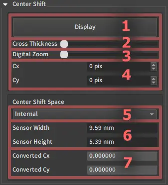 This panel helps convert the values obtained from a pixel offset from the center into the center shift space of the target render engine.