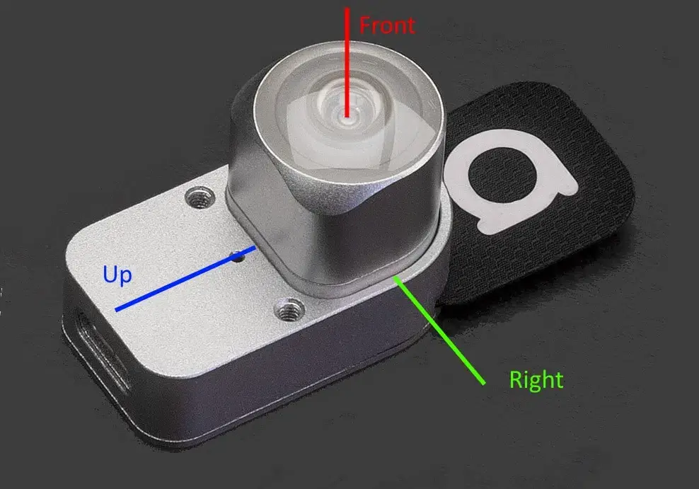 Once you have connected the Alt to the clamp you can attach it to your camera body, just under the lens for instance. This placement is perfect for a floor-based tracking area. For a ceiling-based tracking area, it is better to place the tracker above the camera. To learn more about the placement follow this link.