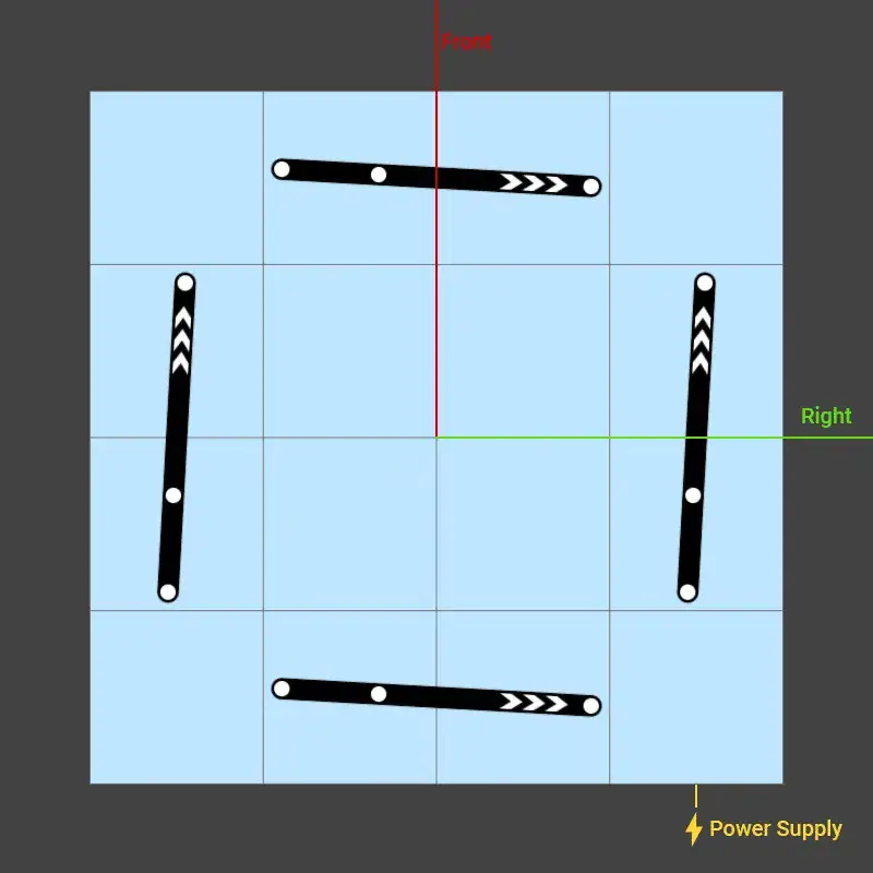 By default, EZtrack uses the DevKit environment. Here is a reference point scheme for the DevKit environment. In the environment editor the top of the image refers to the forward direction. The pivot point is in the middle of the image. You will get tracking coordinates relative to this reference.