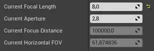 - Focus Distance : The focus distance of the Cine Camera Actor in cm