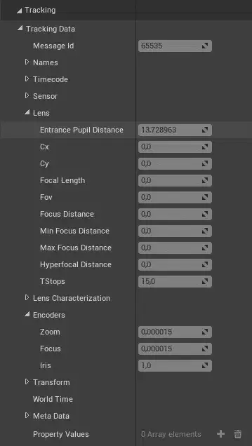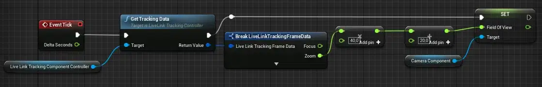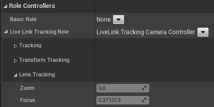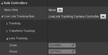 The LiveLink Tracking Transform Controller behave like a Live Link Controller driven by a Live Link Transform Role , with the normalized Zoom and Focus values accessible by blueprints. It is a basic controller letting the user creates its custom implementations.