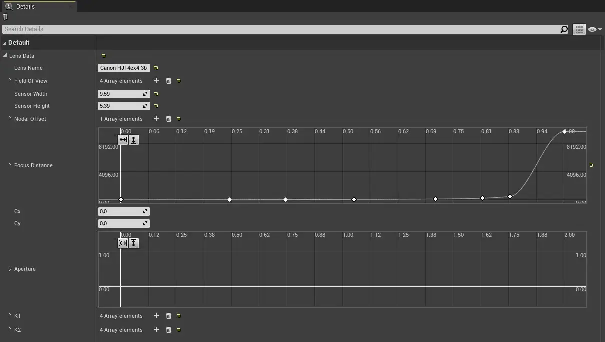 - Lens Profile : Select a Lens Profile asset to convert the zoom and focus values received into focal length and focus distance.