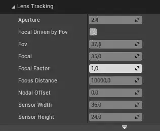 - Fov : Field of View of the Cine Camera Actor in degrees