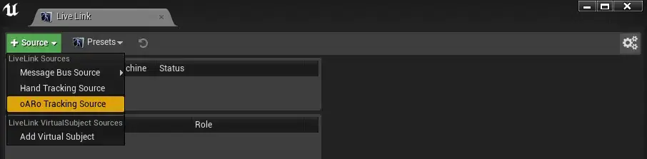 2. Click on + **Source > From LiveLink > ‘YourLiveLinkSubjectName’**.