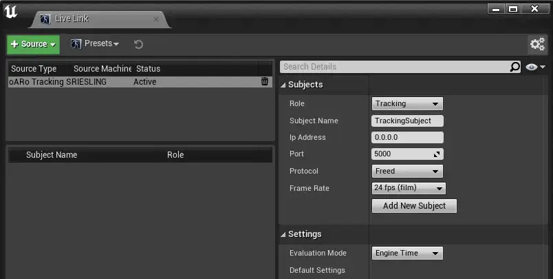 3. Set the Port according to the sender of the tracking data and click on **Add New Subject**