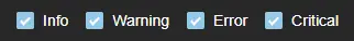 Logs can be filtered using the top bar. It features 4 checkboxes to filter log types and a search field to display only the logs that contain a certain character string. This search can be case-sensitive or not, depending on the state of the “Aa” button in the search field (insensitive by default).